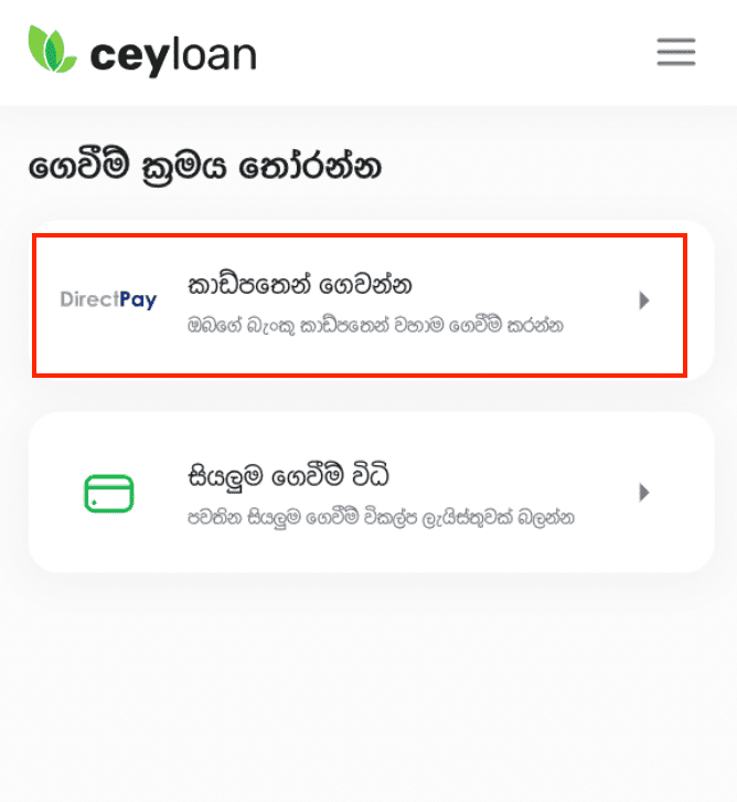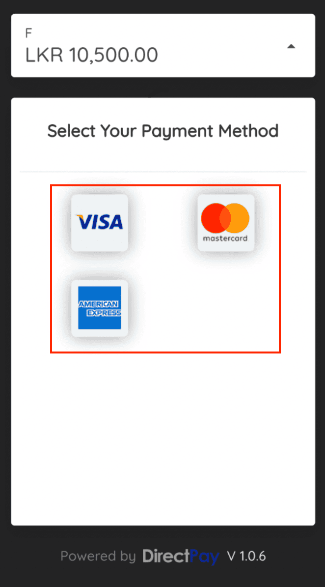 DirectPay ගෙවීමේ විකල්පය තෝරන්න: