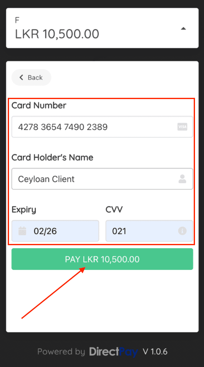 ඔබගේ කාඩ්පත් විස්තර ඇතුළත් කර පහත බොත්තම ඔබන්න: